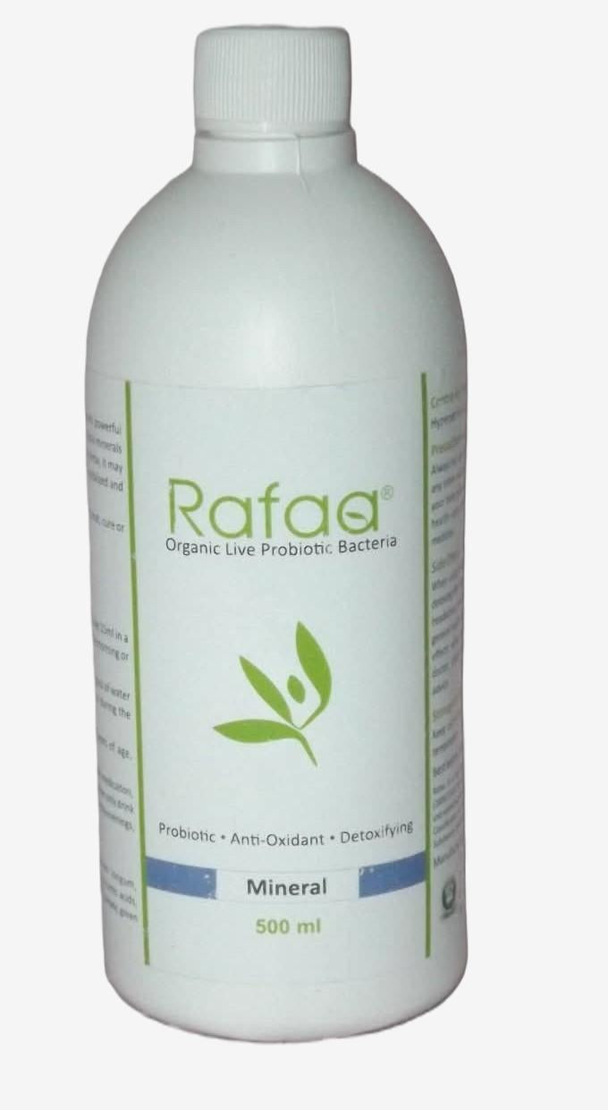 Mineral Rafaa® combines premium minerals with Rafaa®, green tea, and Aloe Ferox, enhanced with refreshing peppermint flavouring. This mineral supplement is formulated to help curb food cravings while delivering a natural energy boost for your daily wellness routine. Available in convenient 500ml and 1-liter sizes, it's designed for oral use to support your nutritional needs.