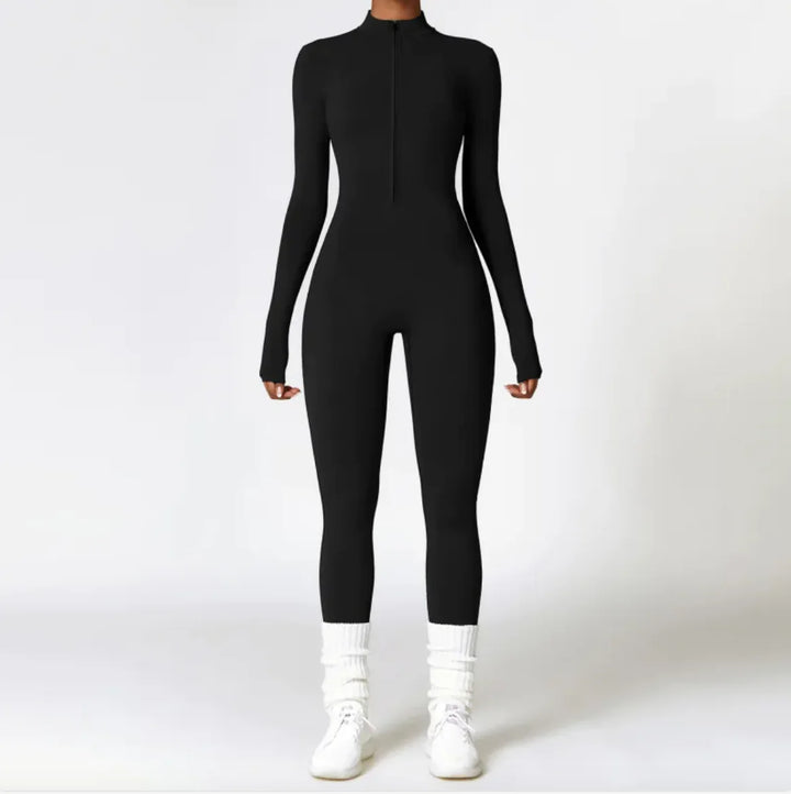 Breathable and comfortable long-sleeve jumpsuit for yoga, fitness, and sports, designed with a front zipper for easy wear, provides warmth and flexibility, crafted from moisture-wicking material to keep you dry, ideal for both workouts and casual wear, offers a flattering, fitted look for active lifestyles.